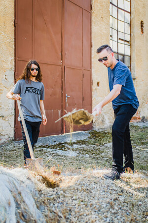 Na ďalšie promo materiály pre koncerty, festivaly a ostatný marketing sme zvolili industriálny priestor v Trenčíne (za ktorý som veľmi vďačná a ktorý ma neraz zachránil aj v daždivom počasí pri fotení svadobných portrétov :)). Nápady na fotky boli už vopred, no počas fotenia sa ďalšie začali zjavovať samé a tak sme si okrem horúceho počasia užili aj kopu smiechu :)